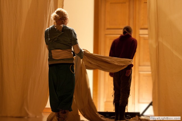Die Dresdner Bearbeitung stammt vom Ensemble La Vie unter der künstlerischen Leitung von René Rothe. Die langen Sprechrollen und die subtile Verwandlung der Figuren sind souverän gespielt. Mit hellen Stoffbahnen kämpfend, stürzend und fallend, an anderer Stelle verbinden die Laken ihn und Julie, engen die beiden ein und lassen sie los – ein wirkungsvolles Spiel und passend zur Intensität und der Nähe der Schauspieler zum Publikum.