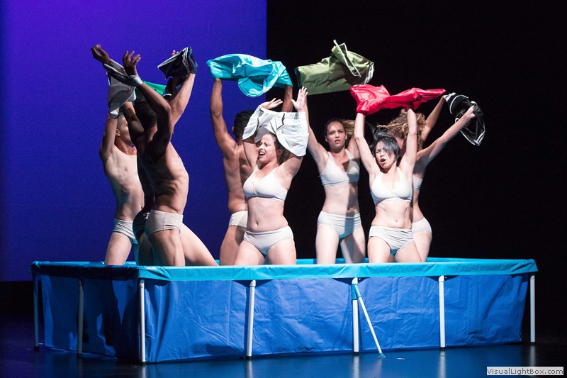 „tChibum” – lautmalerisch „Fall ins Wasser” – ist Körper im flüssigen Zustand, der von festen Gegenständen handelt. Inspiriert von der Essenz der französischen Satirik-Kunst stellen die brasilianischen Tänzer*innen soziale Problematiken dar, die zeitgleich die Geschichte zweier Länder prägten: Wassermangel in Brasilien und das Massaker von Charlie Hebdo in Frankreich. Das zeitgenössische Stück macht einen poetischen, ästhetischen und politischen Querschnitt zwischen den Themen, nutzt die Satire wie auch eigenen Humor. Es zeigt die Freiheit sich auszudrücken, im Kontrapunkt zum begrenzten Raum. In einem kleinen Plastik-Schwimmbecken überraschen die Tänzer*innen das Publikum in der Dynamik von Ebenen, Zeiten und choreographischen Figuren.